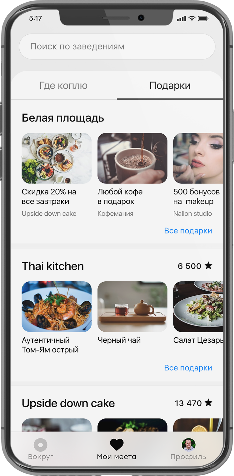 Новости заведений, вечеринки, распродажи в виде уведомлений, которые можно настроить